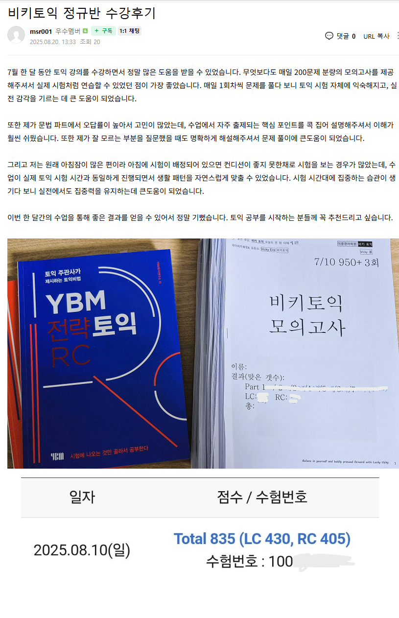 인천토익학원 대표 비키토익 수업 클릭! ★