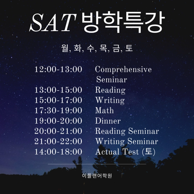 이플랜어학원 SAT 방학특강 (6월-7월 개강) 입니다.